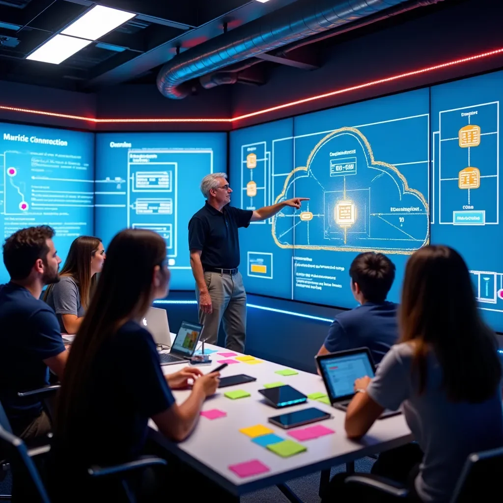 Vores læringsproces er bygget op omkring interaktive moduler, der kombinerer teori med praksis. Du vil deltage i live-sessioner, gruppearbejde og individuelle opgaver for at opnå en dybdegående forståelse af cloud-arkitektur.